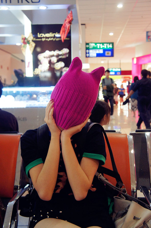 oh yah, a something funny happened when i'm boarding, a security police stop me and he piont at my pink beanie and he asked" awak itu tajam arh?" then I was like "har??!!" then I put my hand on my beanie ear then the police "owh hahahah", everyone laughing when he asked this BAHAHHA